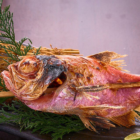 -脂がたっぷりとのった金目鯛を、遠火の炭火でじっくりと焼き上げました。皮はパリッと、身はふっくらと仕上がり、旨みが凝縮された贅沢な一品。素材の良さを引き立てるシンプルな塩味でご提供します