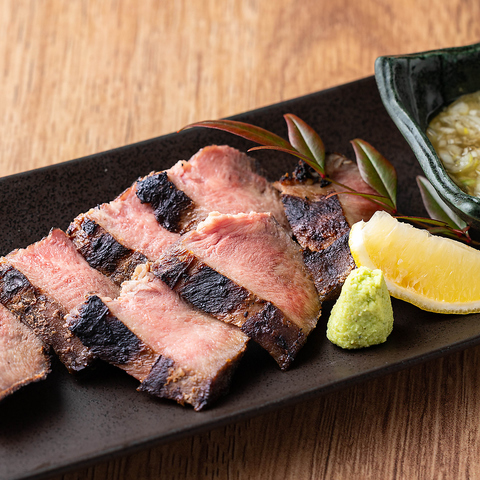低温の炭火でじっくり焼き上げます。中はロゼピンク、さくっとした歯ごたえと旨味をご堪能下さい♪